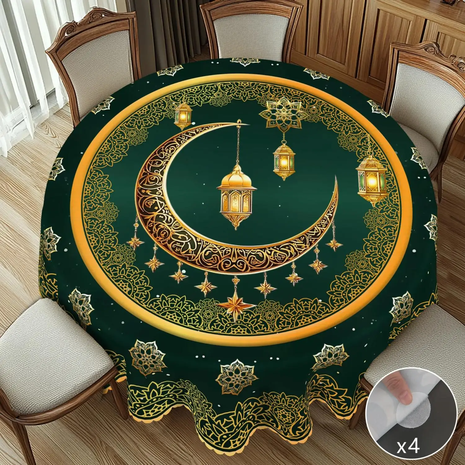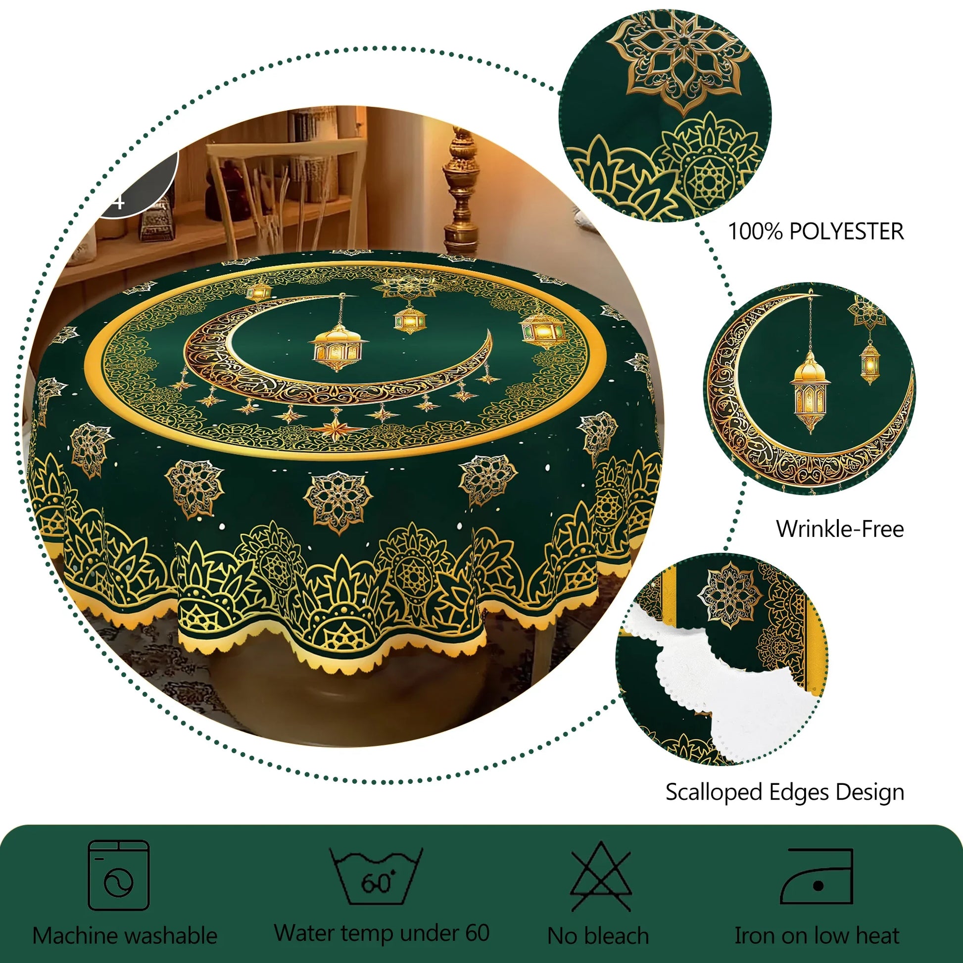 1 Piece of Muslim Ramadan Themed Round Tablecloth, Available in Various Sizes, Exquisite Crescent Moon and Hollow Floral Pattern Printed Round Decorative Tablecloth, Embossed Edge Craftsmanship, Ramadan Home Decoration, Suita