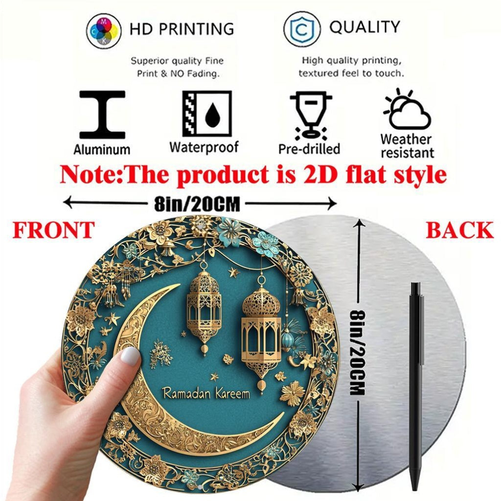 1pc Ramadan Kareem Aluminum Wall Art - 20.32x20.32 cm 2D Flat Printed Moon and Lantern Decor, No Power Needed, Ideal for Home, Office, and Party Decoration, Versatile for Christmas, Thanksgiving, St. Patrick's, Valentine'S Da