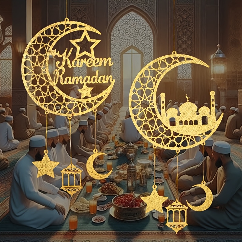 1pc Ramadan Kareem Door Hanger, Wooden Islamic Moon and Stars Wall Decor, Eid Mubarak Hanging Sign, Housewarming Ramadan Party Ornament, No Electricity Required, Muslim Home Decoration