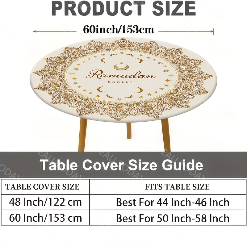 1pc, Ramadan Kareem Polyester Round Elastic Tablecloth, Golden Geometric Frame, Eid Mubarak Decoration Outdoor Farmhouse Tablecloth, Restaurant Kitchen, Ramadan Mubarak Eid Al-Fitr Decorations Holiday Party, Home Decoration_Y