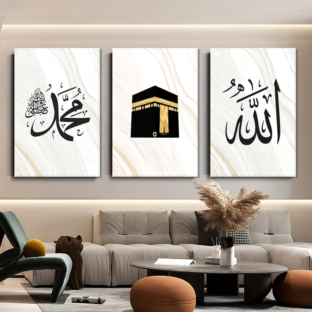 3 pieces of modern minimalist style Arabic calligraphy canvas decorative paintings Islamic culture art wall decoration 2D flat p