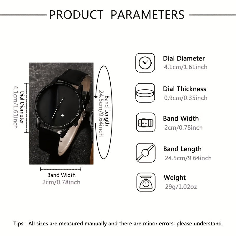 4pcs Men'S Fashion Watch Set, Quartz Movement, Round Zinc Alloy Case, Faux Leather & Stainless Steel Bands, Battery Powered, with Multiple Time Zones & Date Feature, for Valentine's, Easter, Ramadan, Birthdays, Christmas, Eid