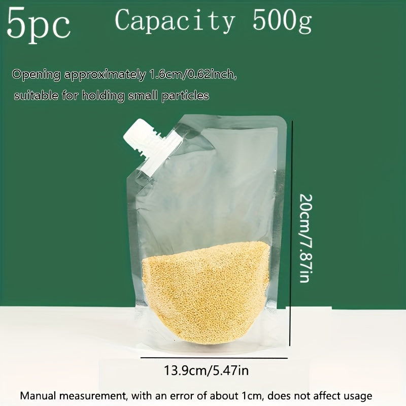 5pcs Food Fresh-keeping Bag With Spout, Grain And Miscellaneous Grain Storage Bag, Transparent Food Sealed Bag With Pour Spouts, Home Kitchen Supplies