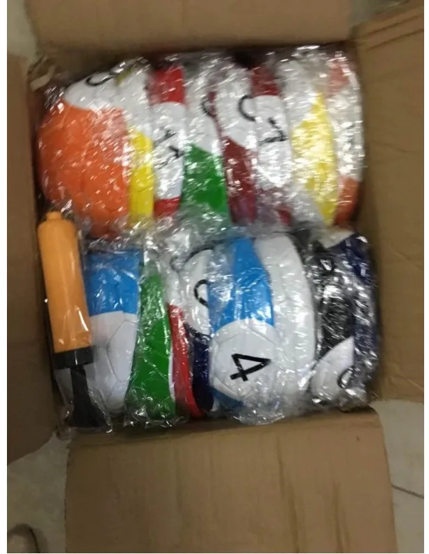 Packing: 1 set 16pcs size 4 football with a 6'' ball pump and a big net bag for carry these balls when the ball be inflate