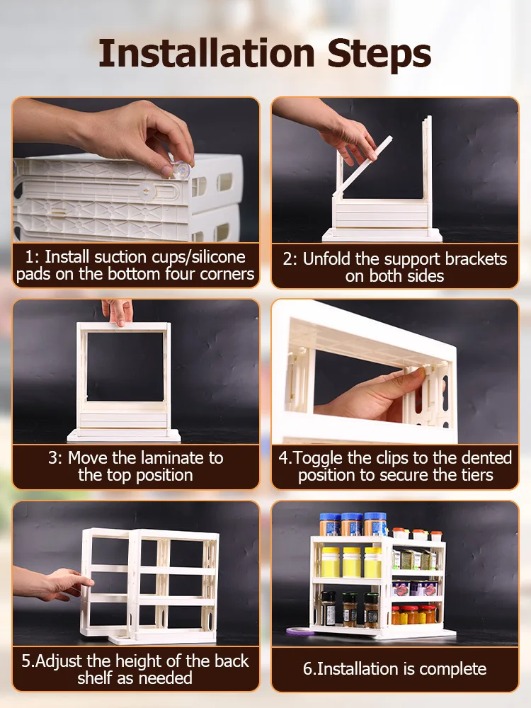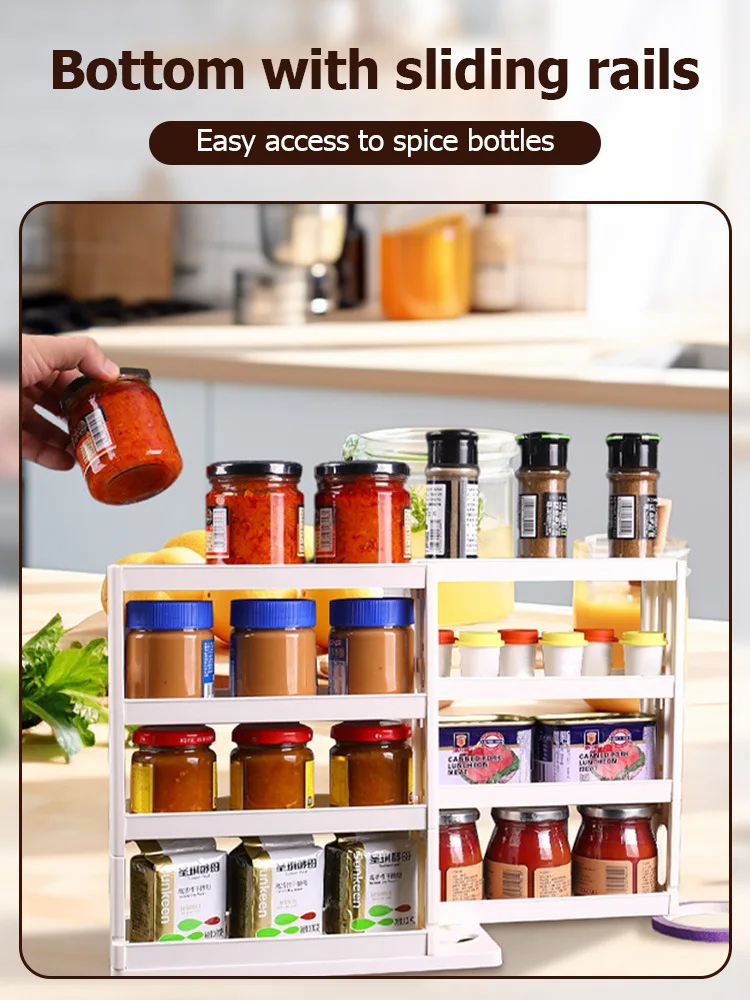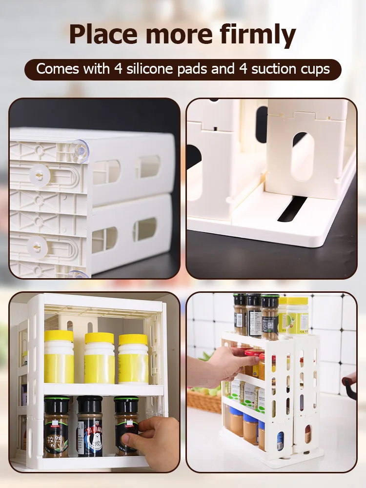 AMZ Bset Sale Cabinet Folding Spice Jar Rack 4 Layers Seasoning Storage Rack European Seasoning Kitchen Rotary Storage Rack