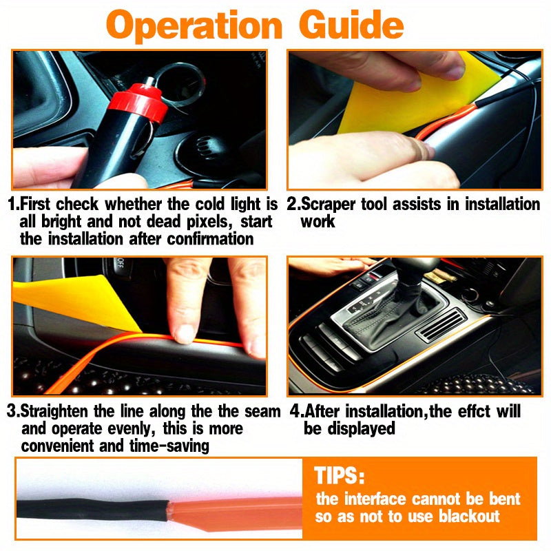 Automobile interior LED decorative lights, EL neon light strips, ambient lighting, modern car decoration, flexible LED light strips, long-lasting illumination, LED mood lighting, for night drivers, a must-have for car owners.