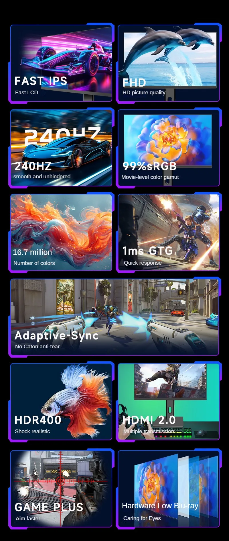 Dynamic RGB 23.8 27" FHD 165Hz Gaming Monitor1ms MPRT IPS Panel with AMD FreeSync for Battle Station Setup