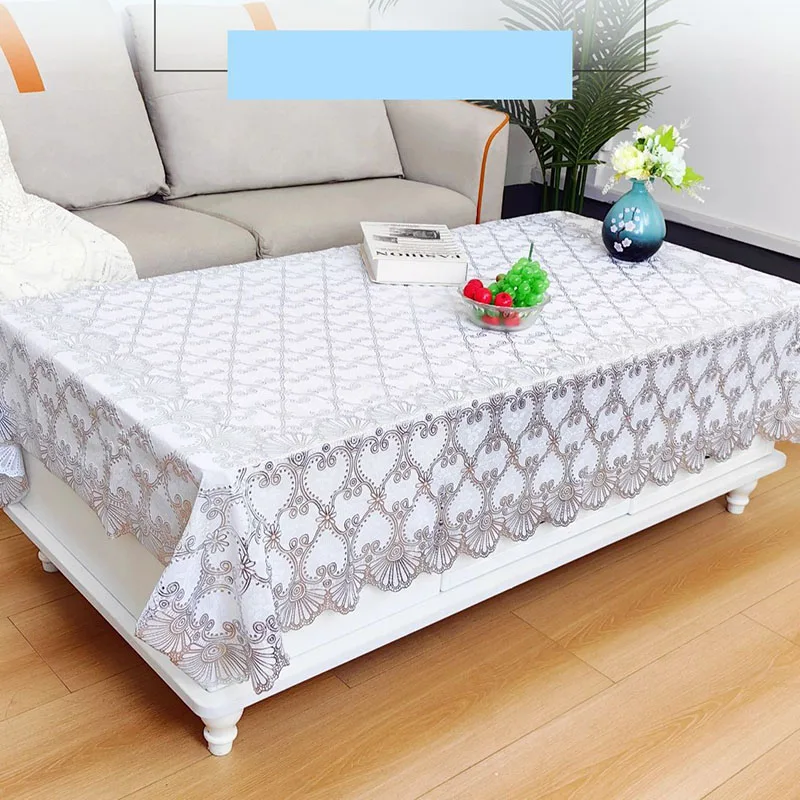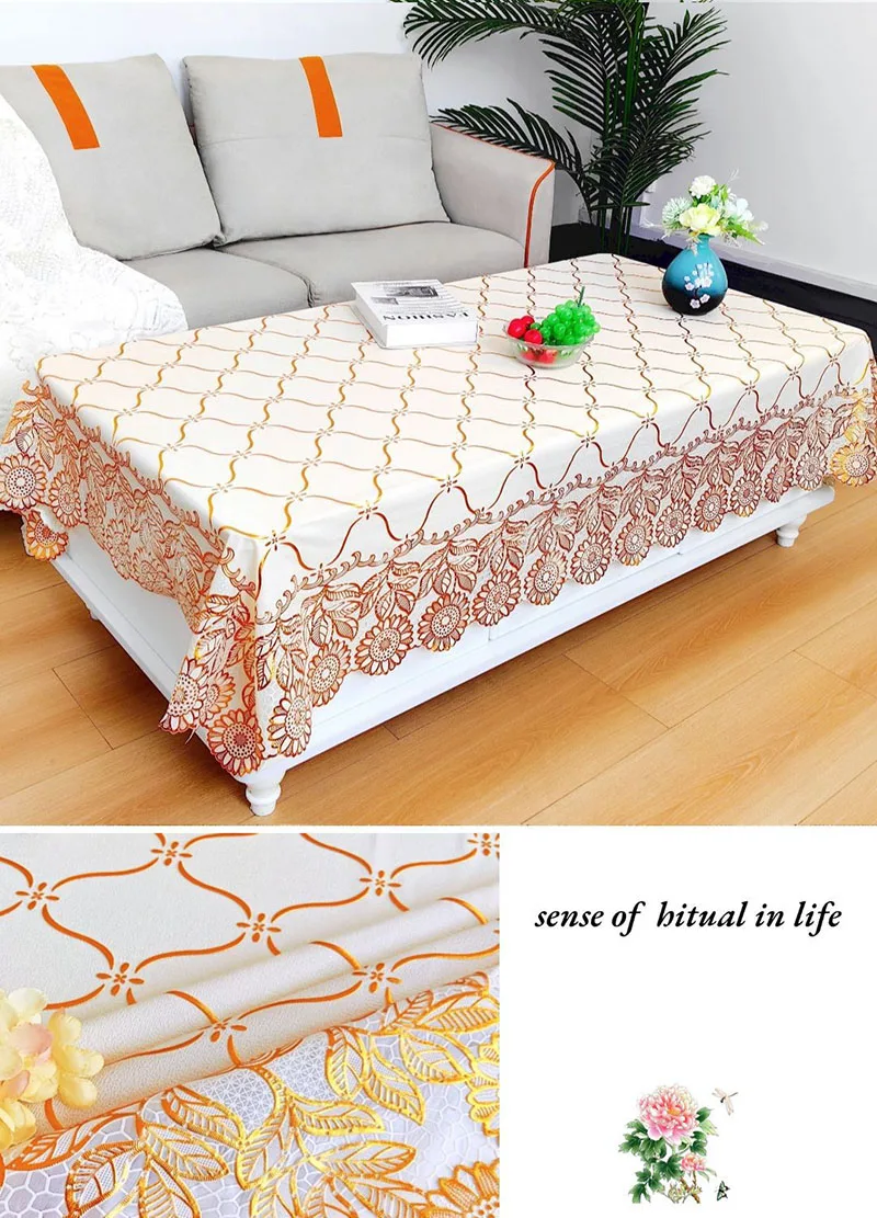 Europe and America Waterproof Lace Tablecloth Wash-Free Bronzing Dining Decoration Soft Dust-Proof Table Cover for Holiday Party