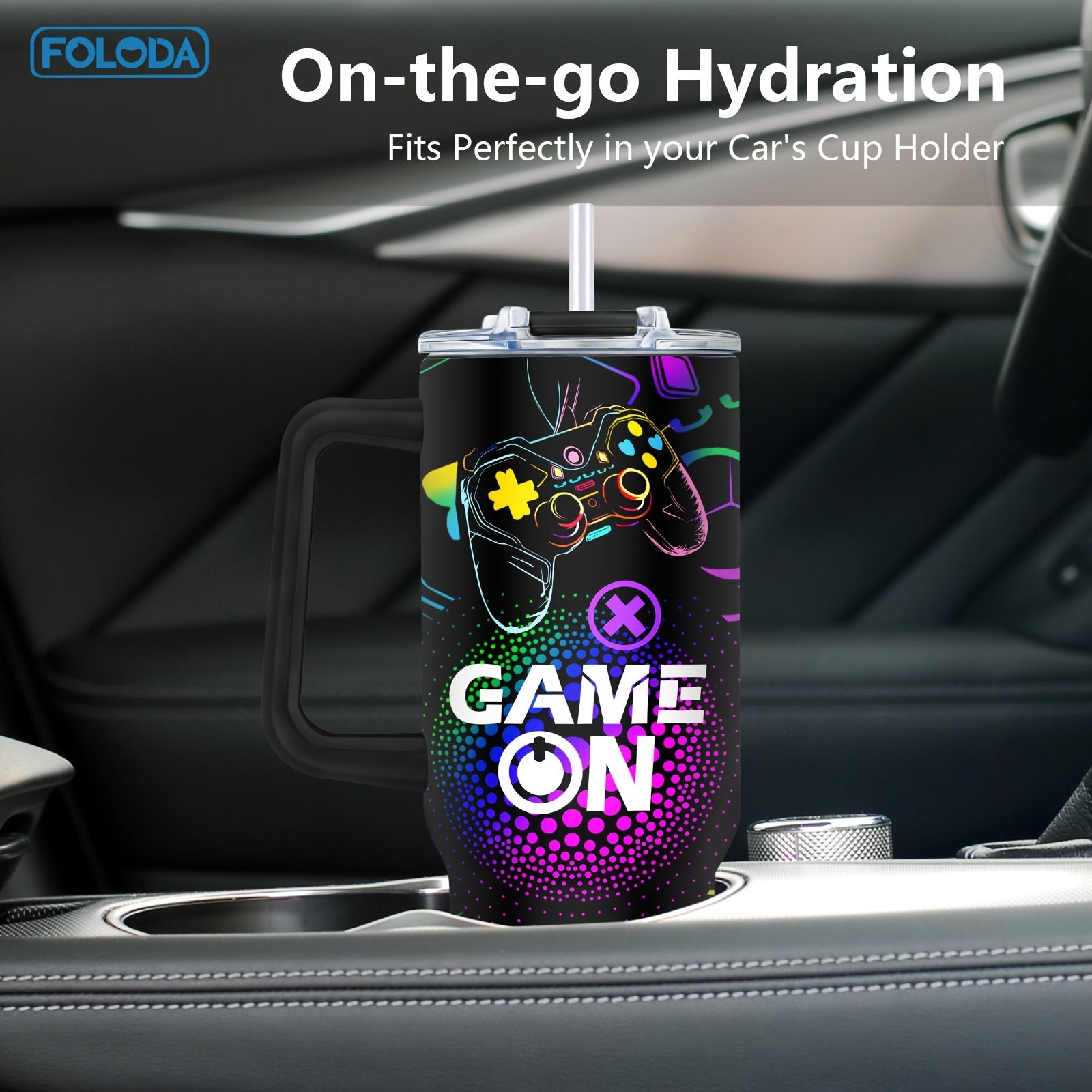 Foloda 1pc 40oz Gaming Mug Tumbler, Gamer Gifts For Men, Gifts For Gamers Men Boys, Cool Gaming Gift, Game Mug, Gifts For Game Lovers Stainless Steel Cup With Handle Lid Straw, Tumbler For Outdoor Camping Travel Accessories B