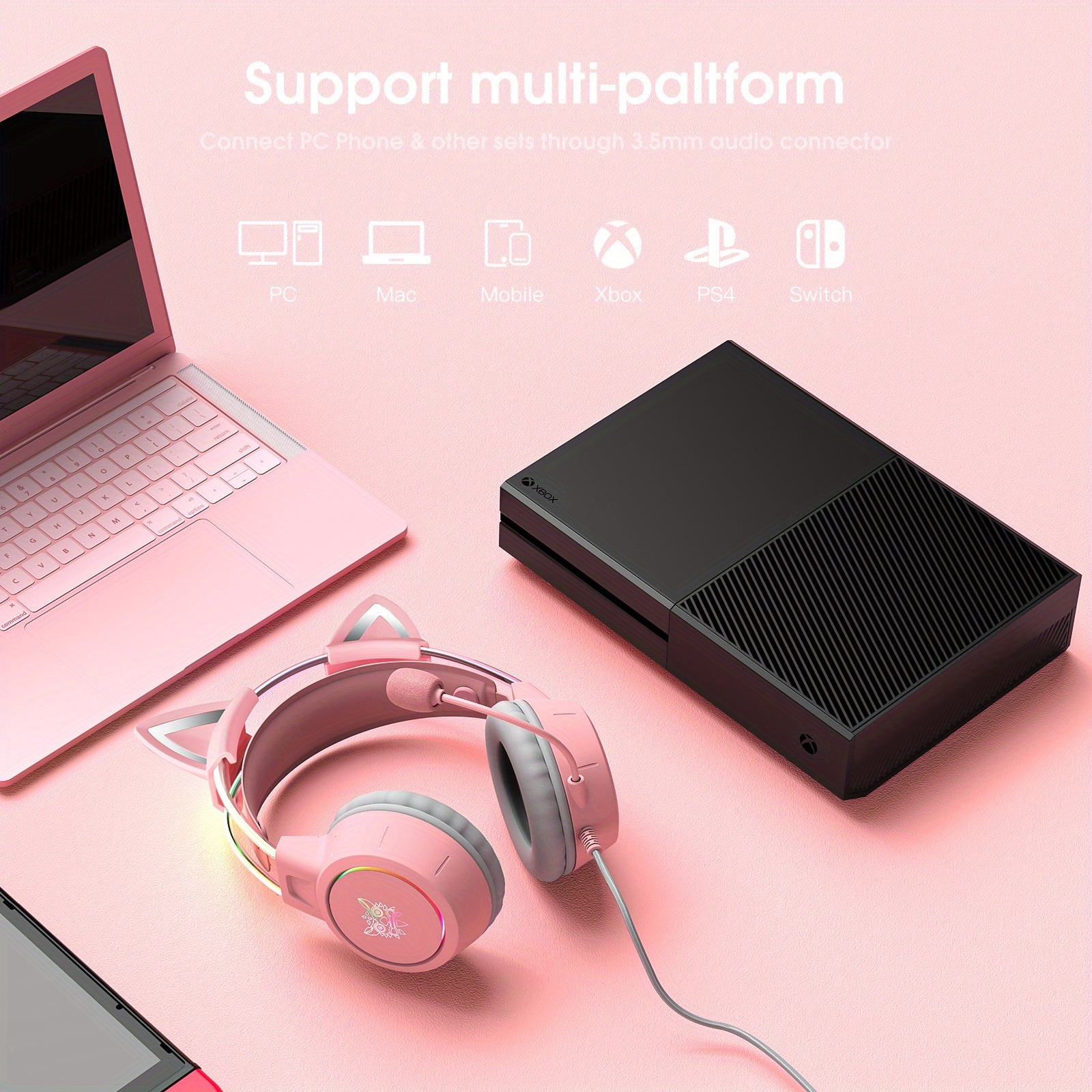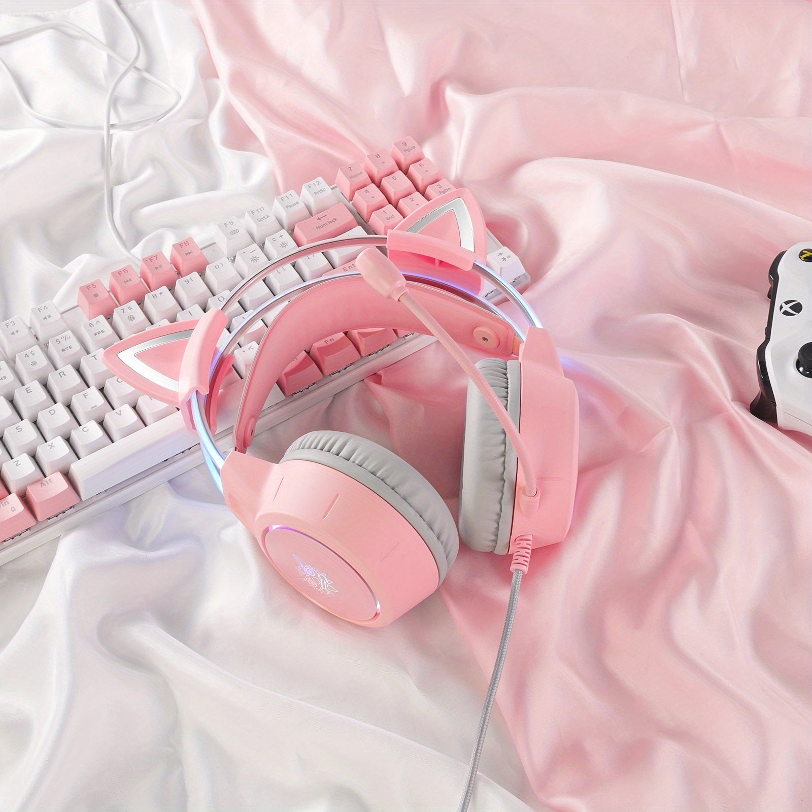 Gaming Headset RGB Lighting Head Beam Wired Headset Detachable Cat Ears Gaming Headset Flexible Mic Button Control Suitable Computer Earphones for PC Gamer