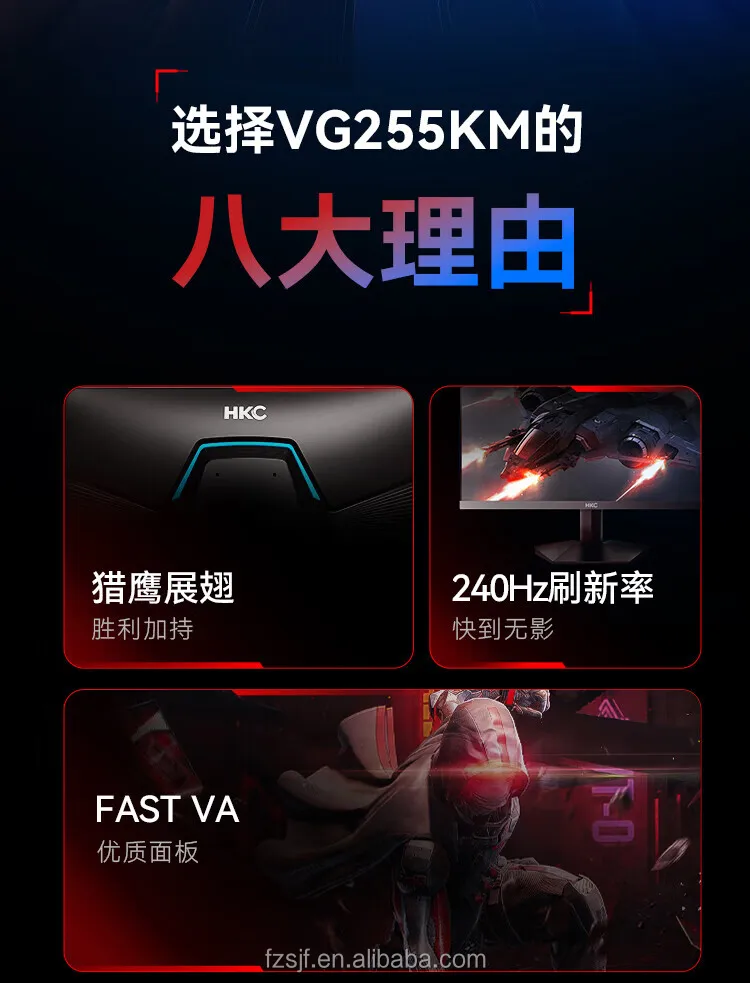 HKC VG255KM Best Selling 24.5 Inch 1920*1080 1ms Flat VA Panel High-Performance 240HZ PC Gamer Screen LCD Display New Gaming
