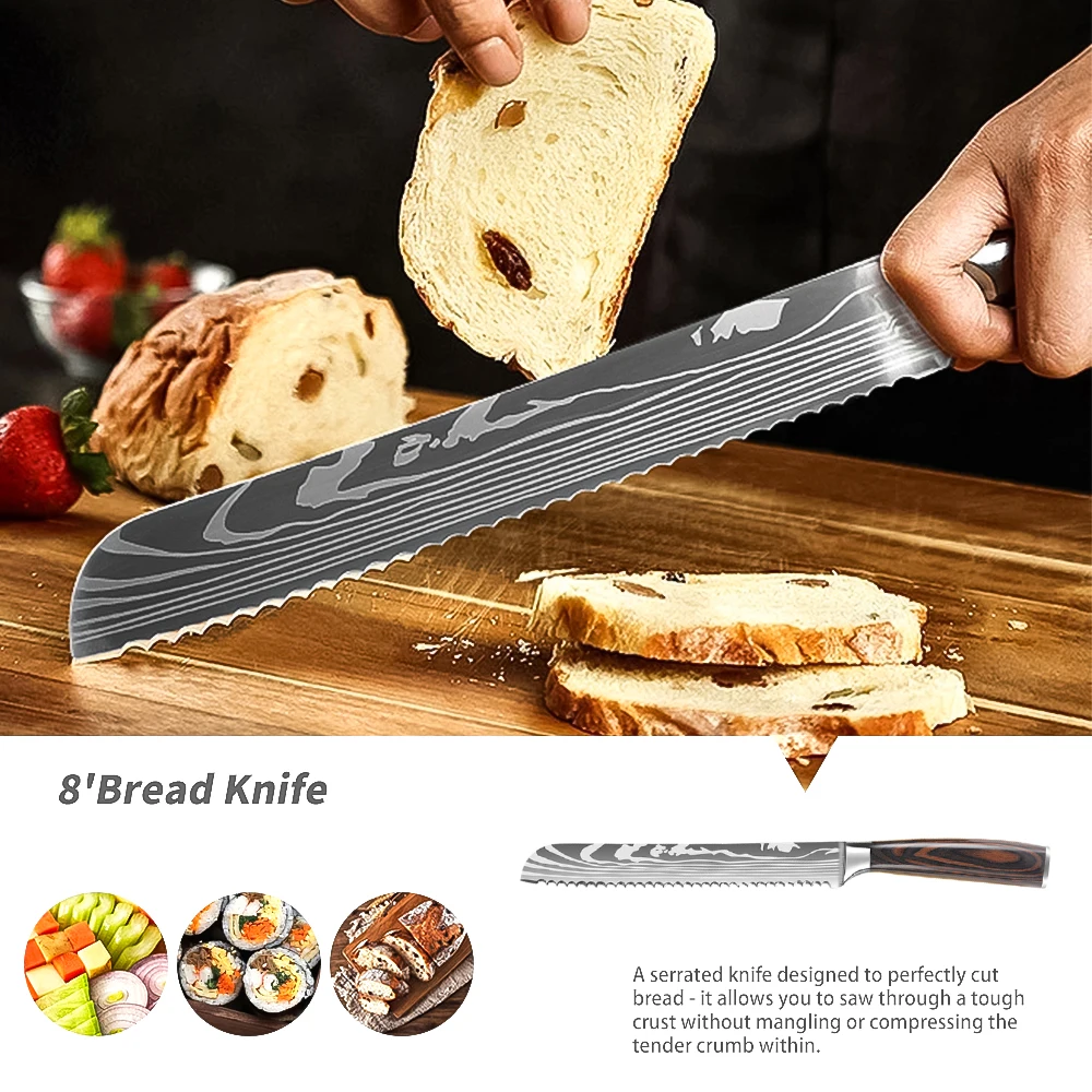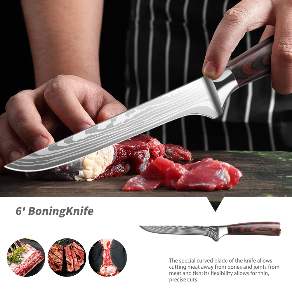 Product Name: 4cr13 Stainless Steel Blade Pakkawood Handle Kitchen Knife Set