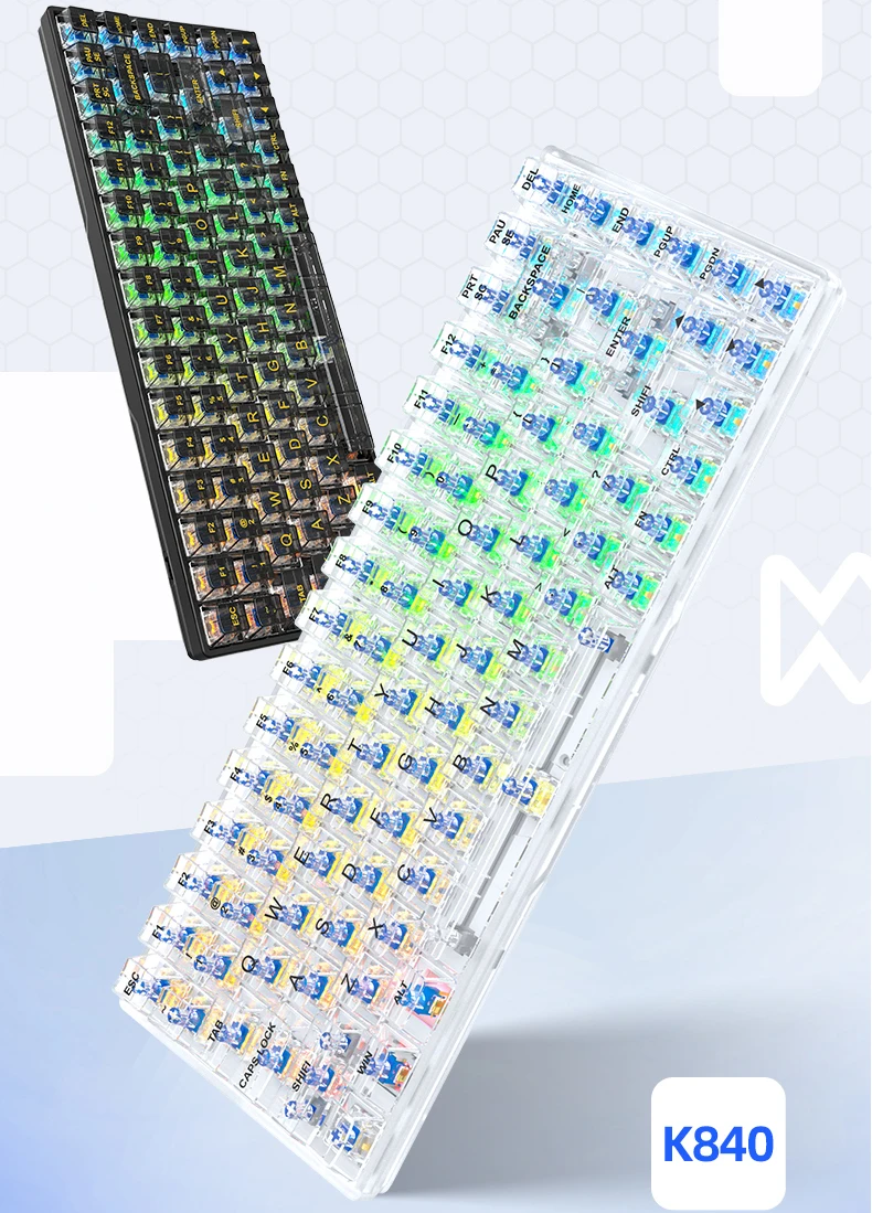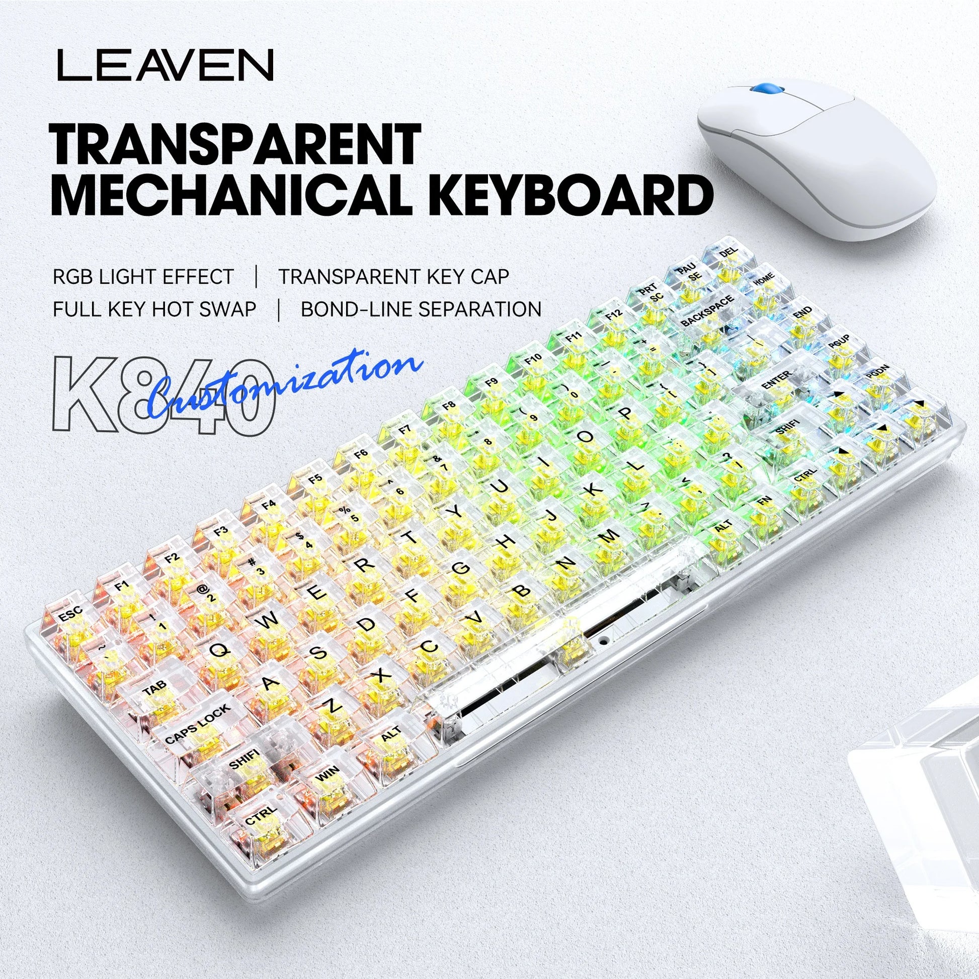 LEAVEN Wired RGB Full Key Conflict Free Black Transparent Mechanical Keyboard Hot Swappable Keycap Switch for Gaming