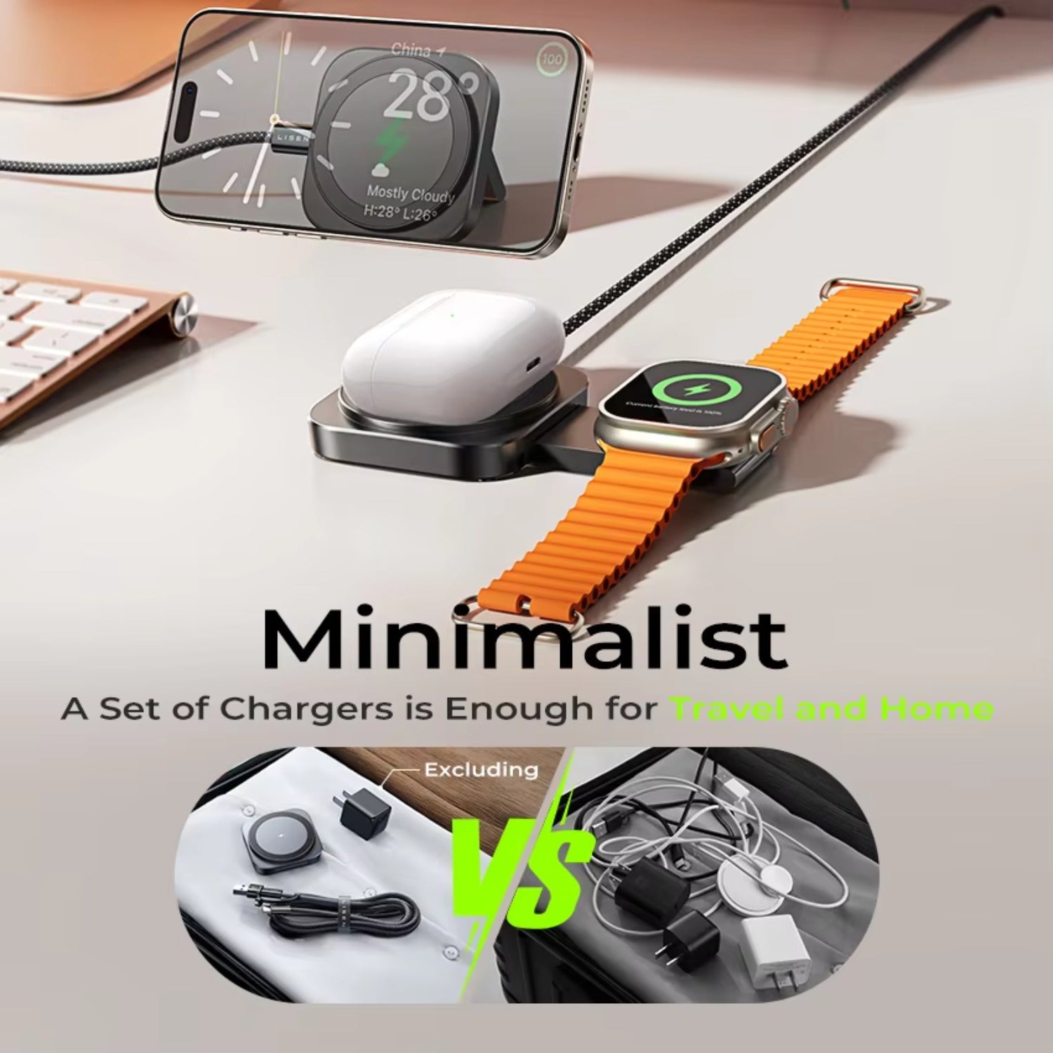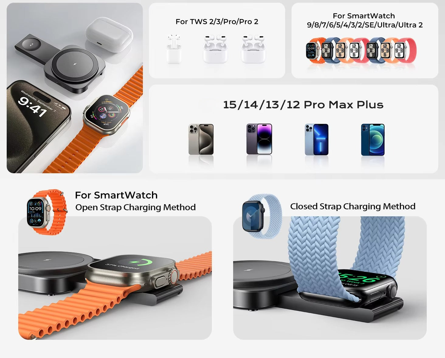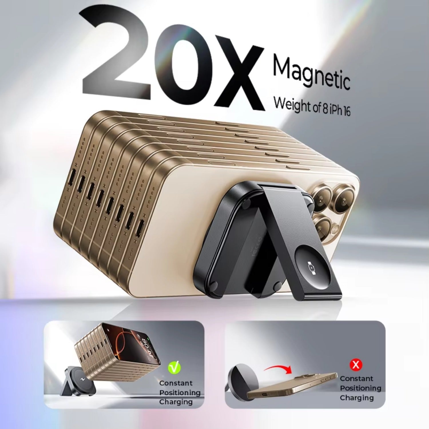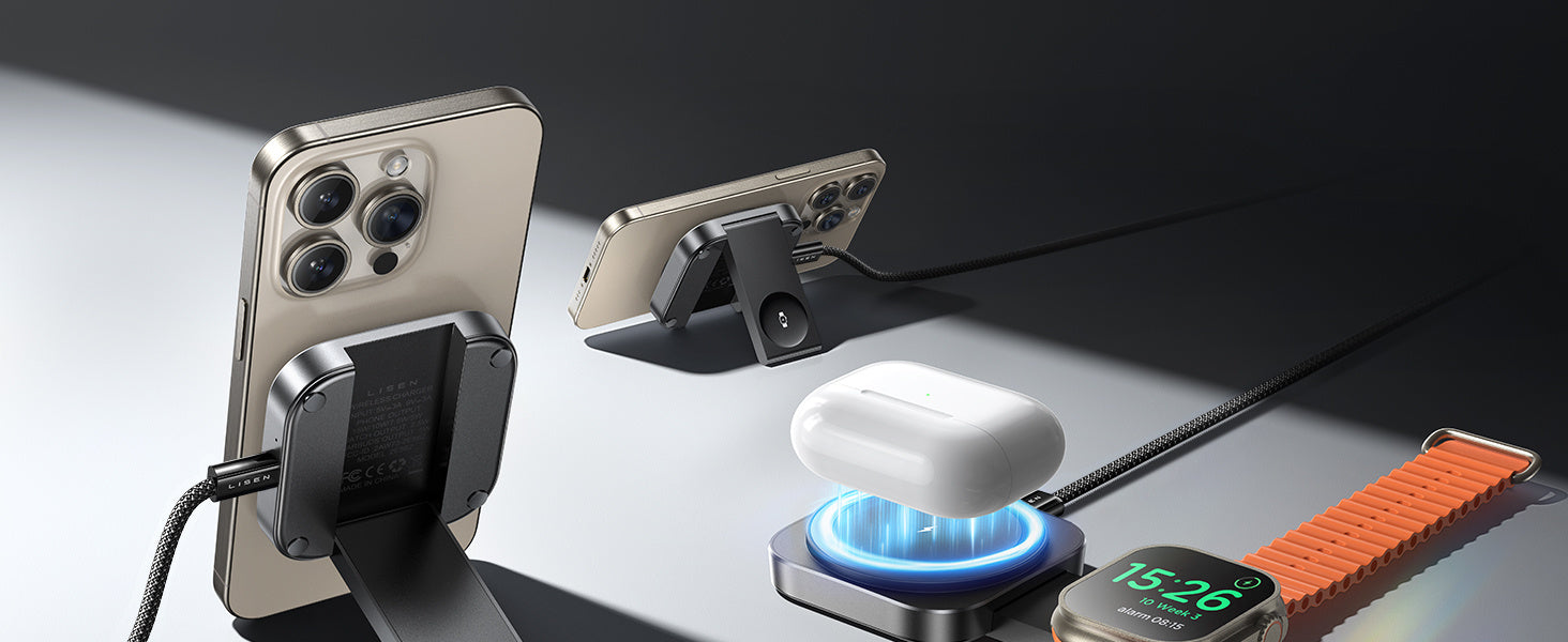 LISEN Third Generation Magnetic Wireless Charger Base, Mini Charging Station, Travel Charging Pad, Portable, Suitable for Multiple Devices, Mobile Phones/ Earphones/ Smart watches, Ffast charging, Long-lasting Life
