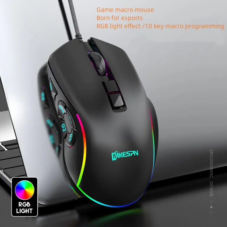 MKESPN X9 RGB Macro Defines a Programmable 6D Gaming Wired Mouse10 Buttons Gaming Mouse E-sports Mice
