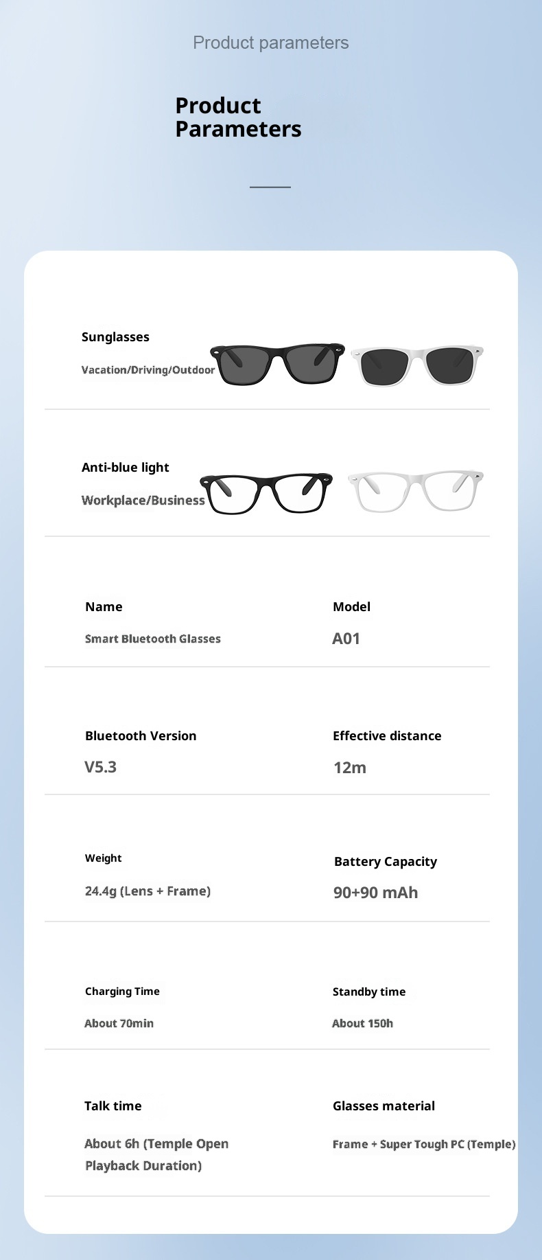 Packaging list: Glasses, glasses cloth, cloth bag, magnetic charging cable, user manual