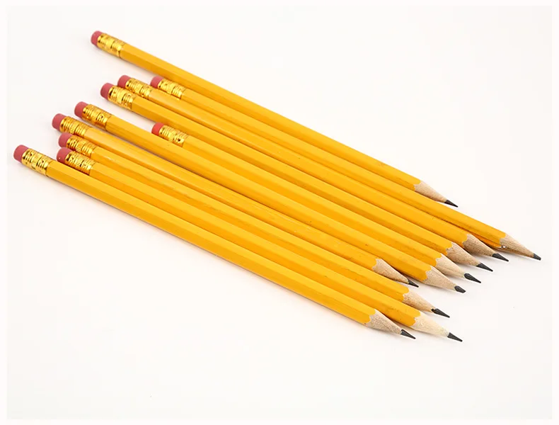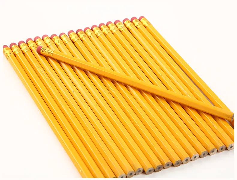 Poplar Wood Hexagonal Yellow HB Pencil With Eraser for Office and School Natural Wooden Pencil