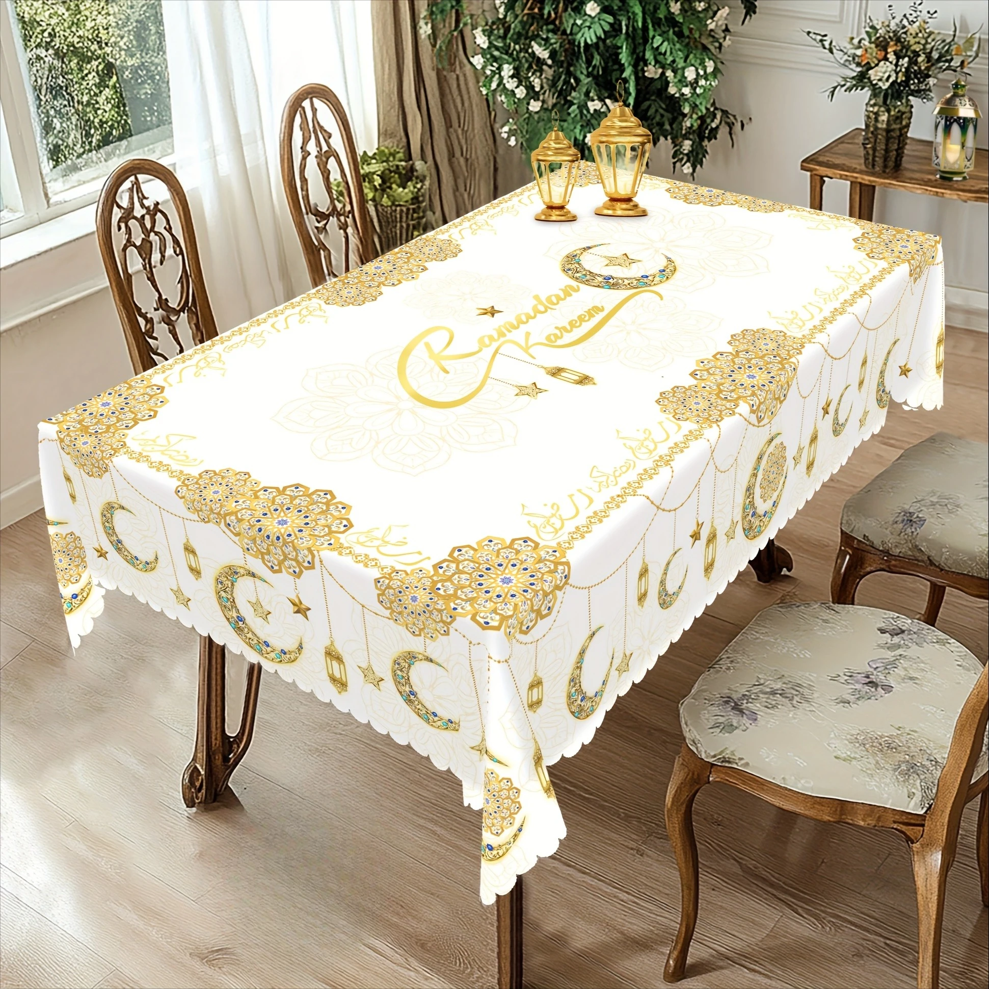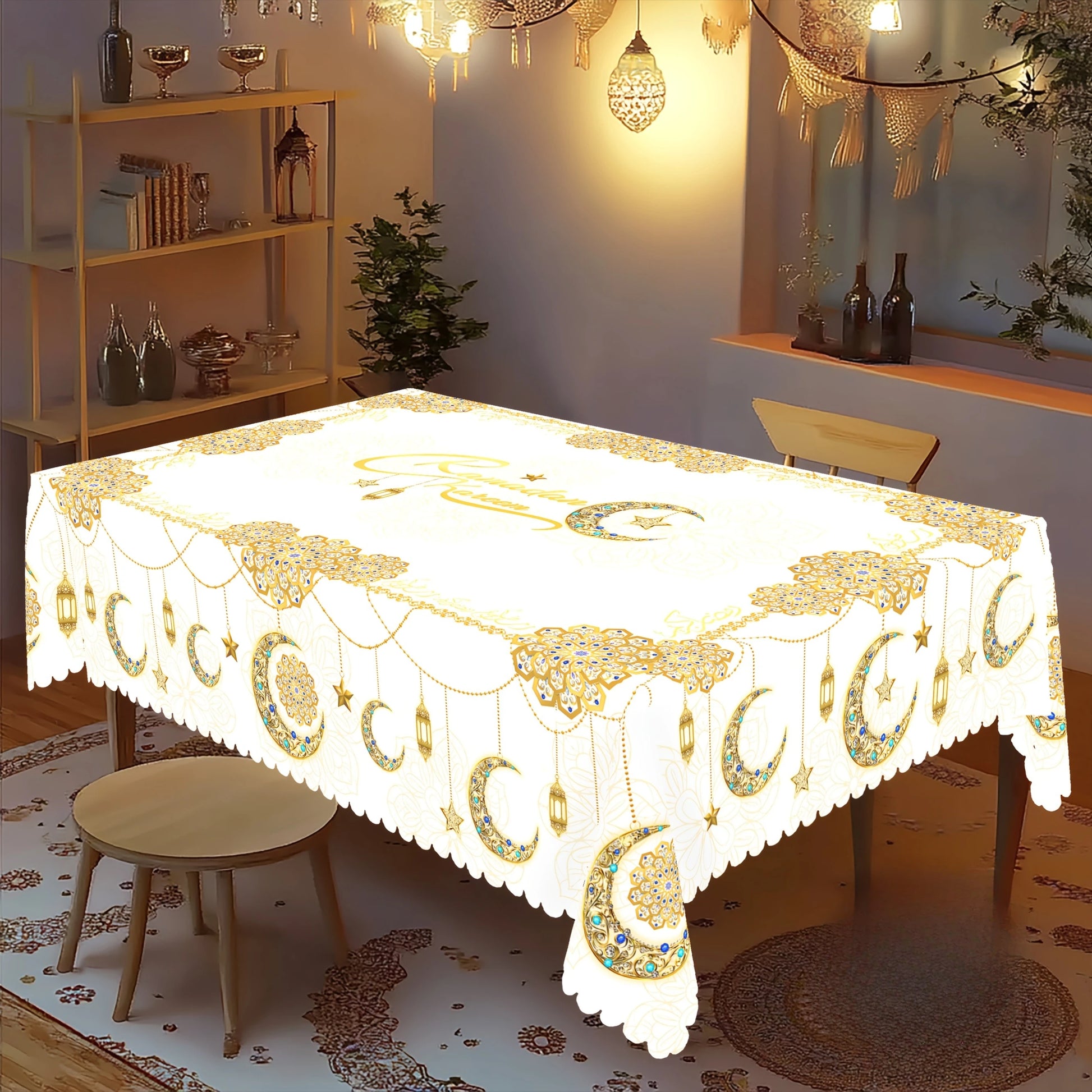 Ramadan Mubarak Star Moon Lanterns Waterproof Tablecloth Table Decor Eid Al Fitr Kitchen Dining Tablecloth Ramadan Decorations