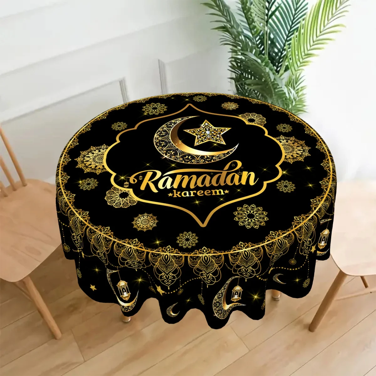 Ramadan Round Tablecloth Table Cover Ramadan Decoration 2026 for Home Ramadan Kareem Islamic Muslim Party Eid Al-Fitr Gift