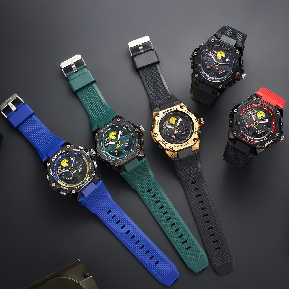 SMAEL Racing Dashboard Design Outdoor Sports Watch - LED Stopwatch Quartz - For Men & Women - Suitable for Sports & Outdoor Activities - Perfect Gift for Adventurers & Sports Enthusiasts