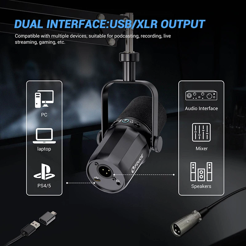3. Dual - Interface USB/XLR Output:SL40 dynamic mic supports USB & XLR output. Plug - and - play for easy connection to professional interfaces. No built - in preamplifier needed to get extra gain.
