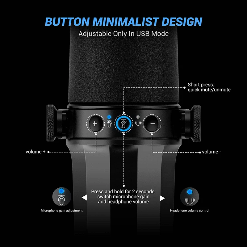 4. Minimalist Function Key Design:Features one - key mute. In USB mode, long - press mute button to switch mic & headset volume control. Monitor your voice and adjust mic gain in real - time as required.