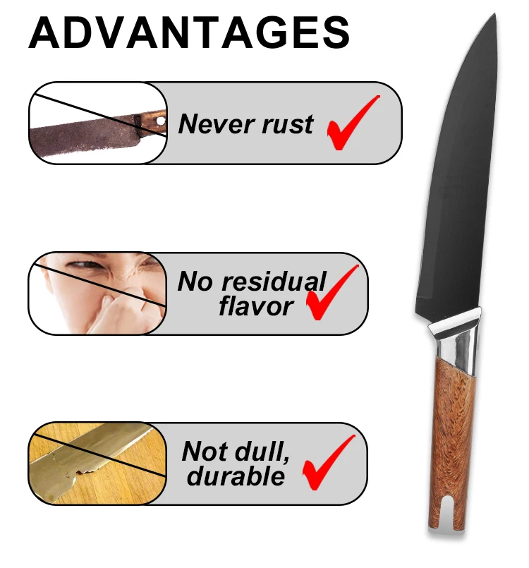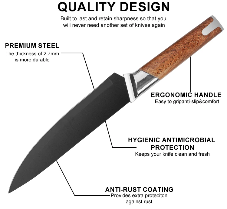 KUS-S-24071 Wholesale 13-Piece Stainless Steel Chef Knife Set Super Sharp Nonstick Coated Kitchen Knives with Universal Knife Block |
