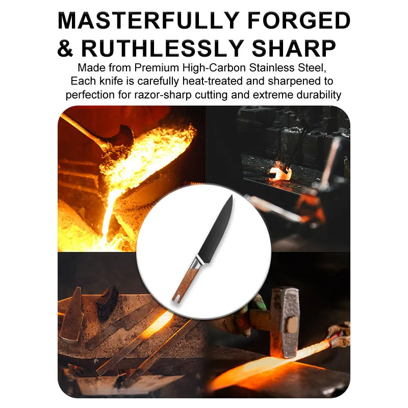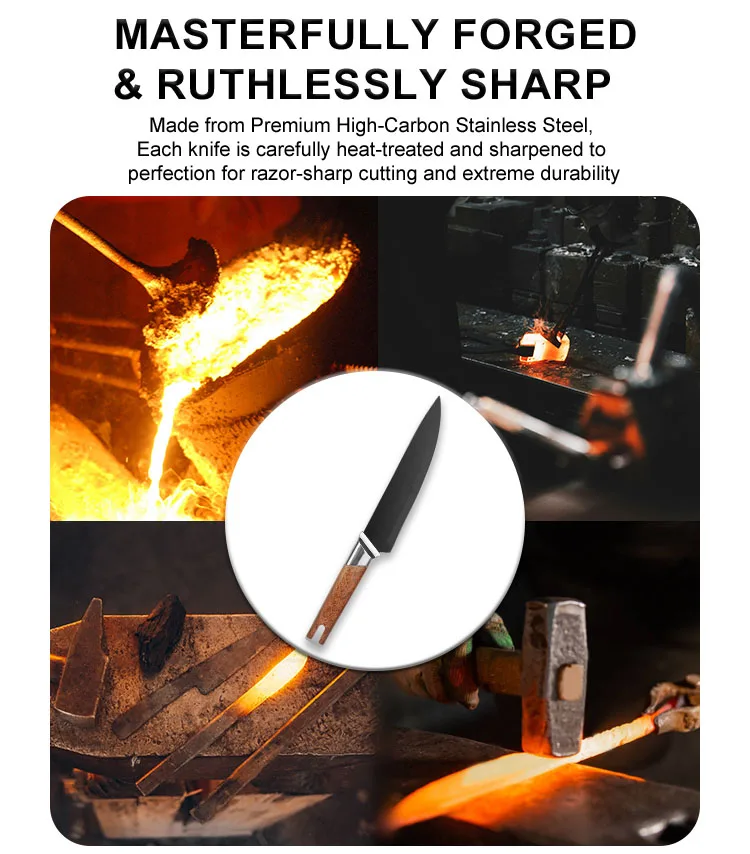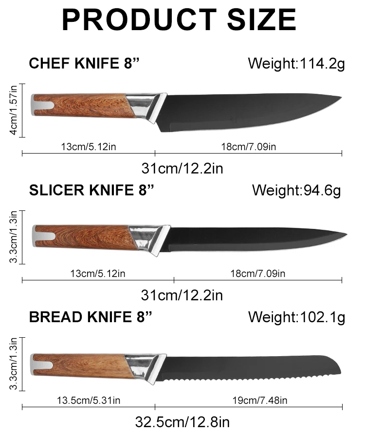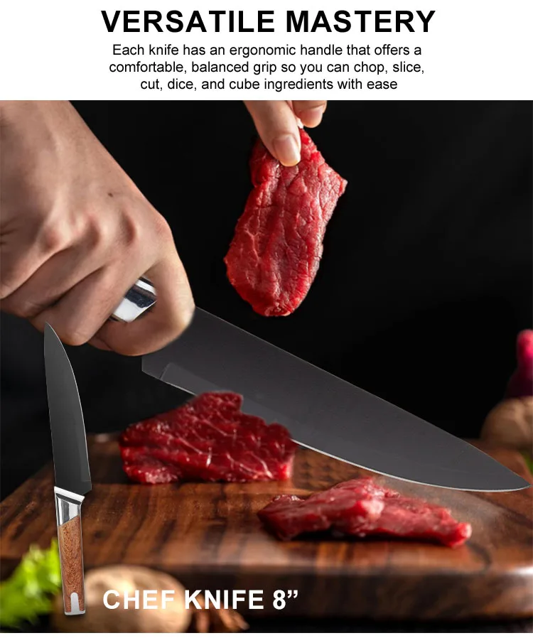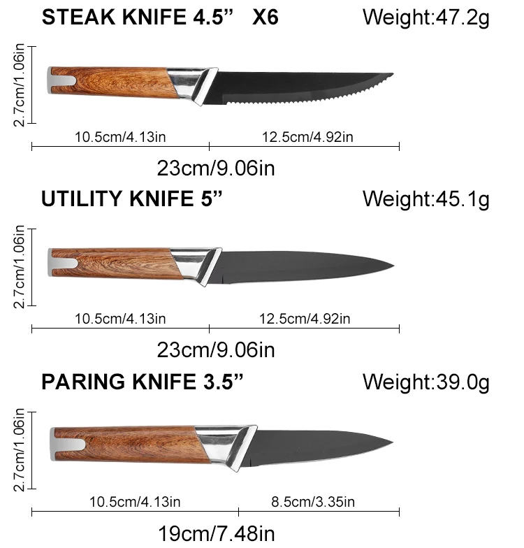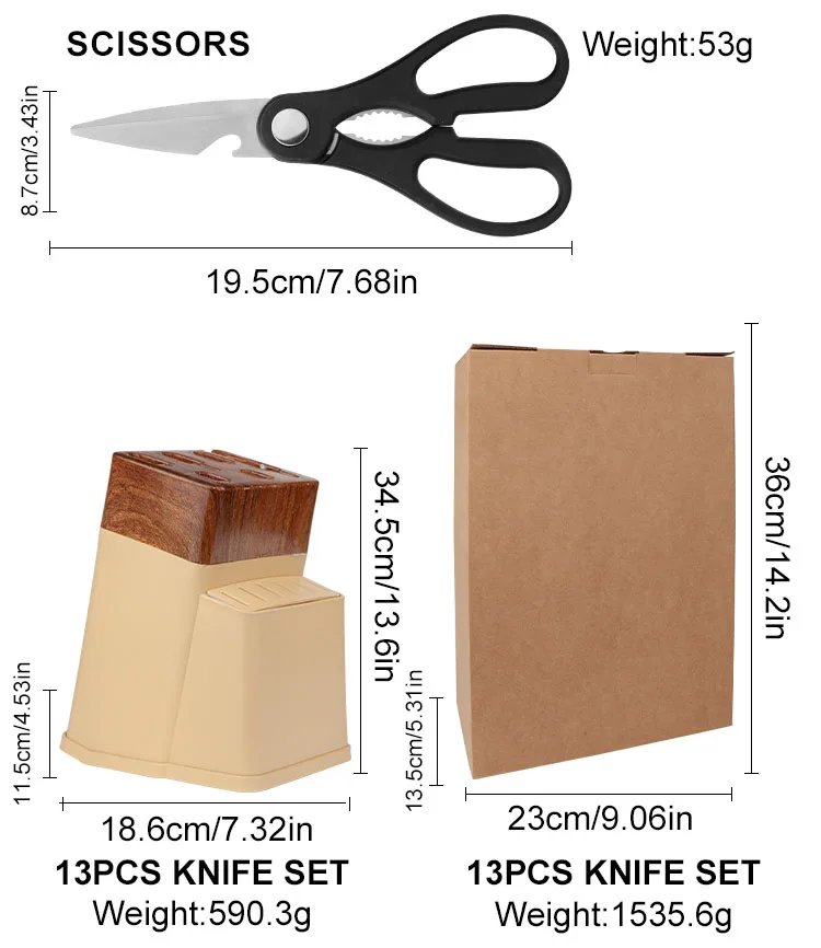 Wholesale 13-Piece Stainless Steel Chef Knife Set Super Sharp Nonstick Coated Kitchen Knives with Universal Knife Block